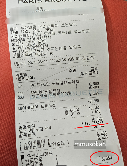 네이버페이 어플없이도 파리바게트 할인받고 결제할 수 있어요.