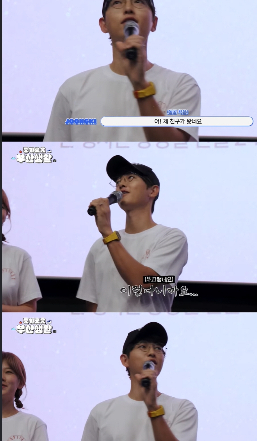 영상 속 송중기는 '아들 이름 정하셨냐?'는 질문을 받자 "그걸 제가 왜 알려줘요"라고 대답했다. 기자는 민망한 듯 웃었고 송중기는 "안 알려주지"라고 덧붙였다.
