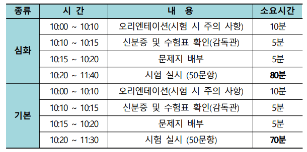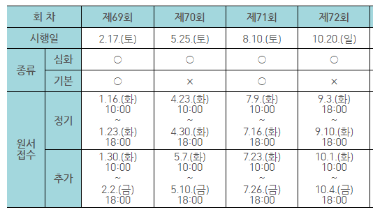 ◦ 시행 횟수 : 총 4회(심화 4회, 기본 2회)